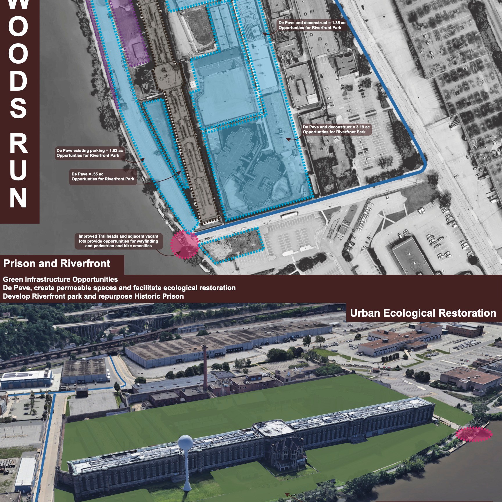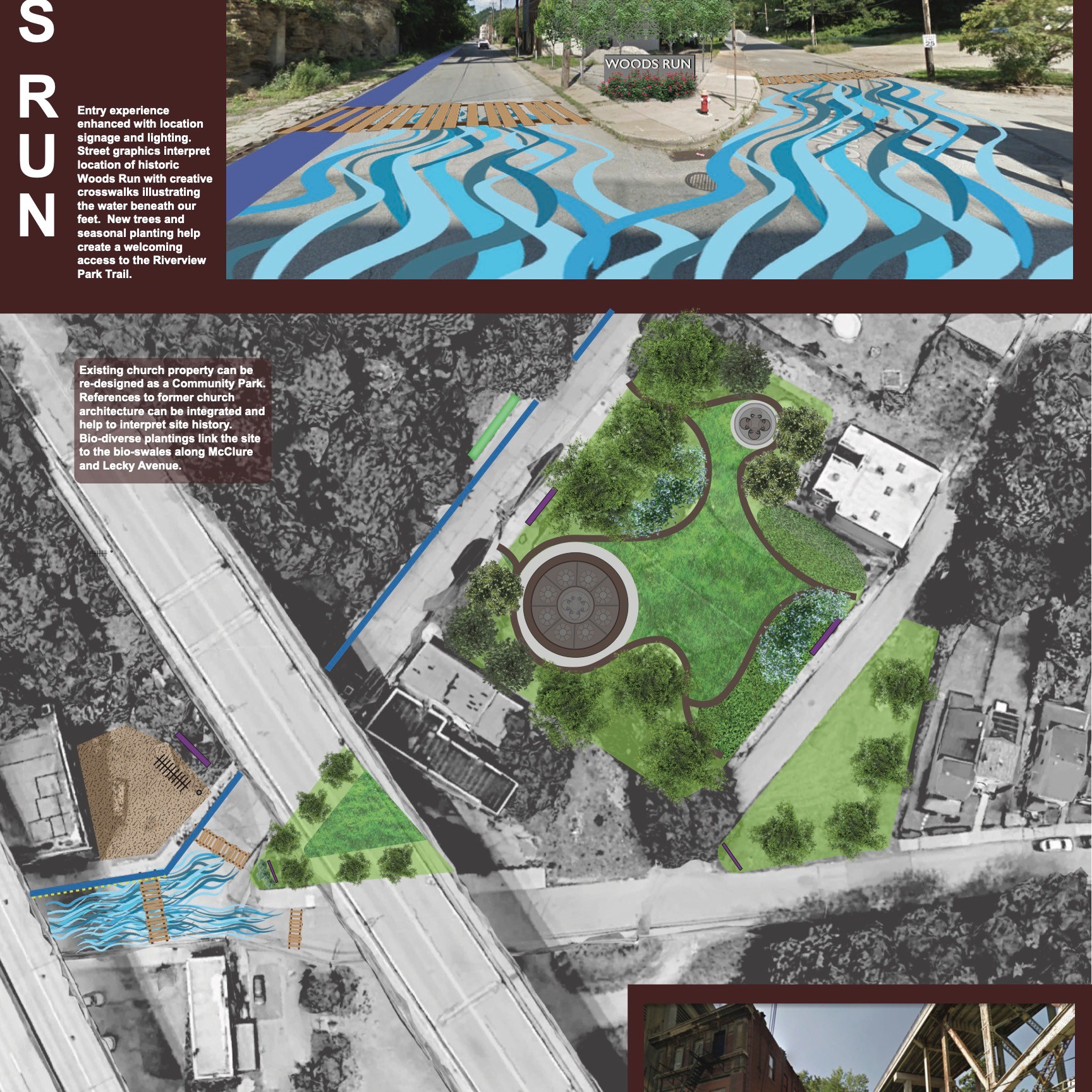 During the pandemic, the Woods Run Watershed Taskforce, Pittsburgh Parks Conservancy, and the National Park Service partnered to create a blueprint for the Woods Run Green Corridor. This initiative envisions the restoration of ecological habitats on vacant and underutilized land throughout the watershed. By transforming these spaces, the Green Corridor aims to manage stormwater more naturally—keeping excess water out of the overburdened sewer system.