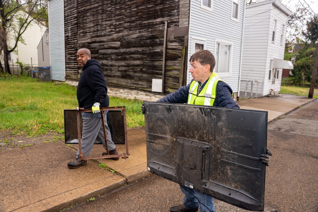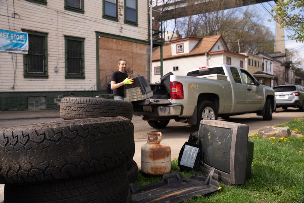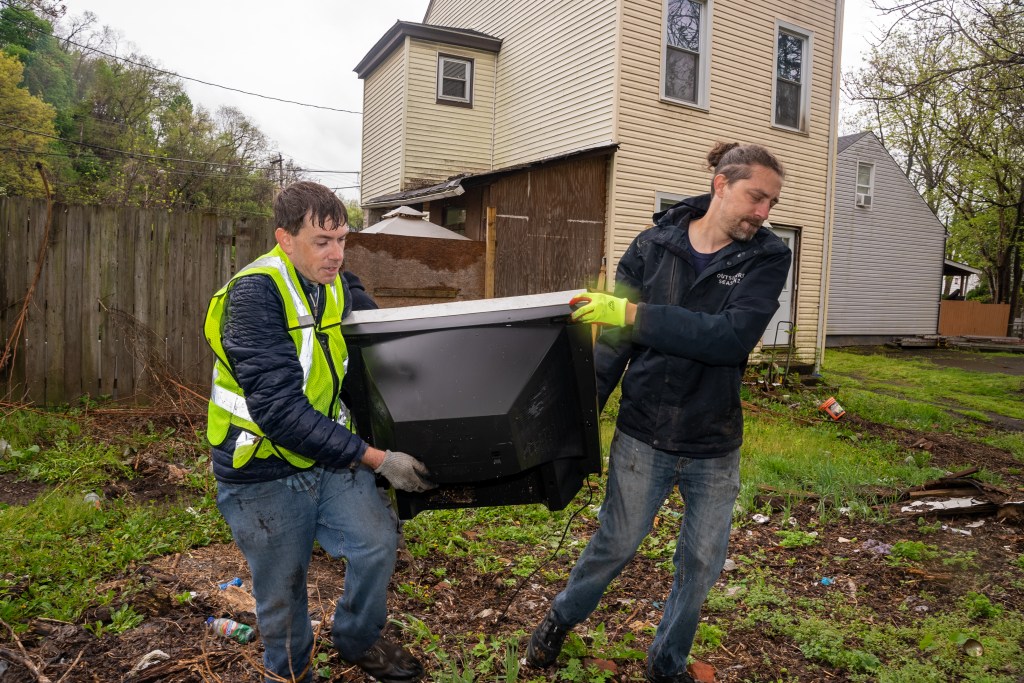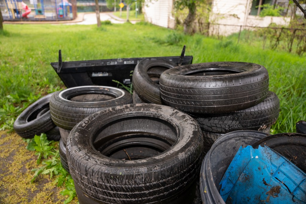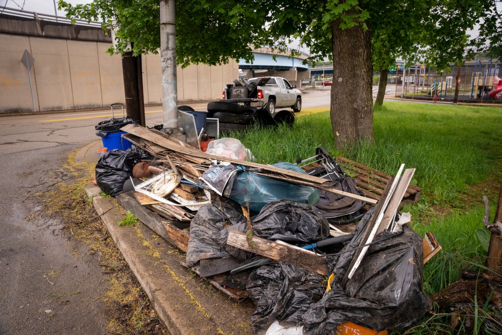 On Monday, May 8, 2023 the team met to remediate one of two large-scale illegal dumping sites located along Suffolk Street, which straddles the border between Fineview and Perry South. A small group collected an estimated 4,000 pounds of illegally-dumped tires, televisions, building materials, furniture, and general litter in the span of about 75 minutes.