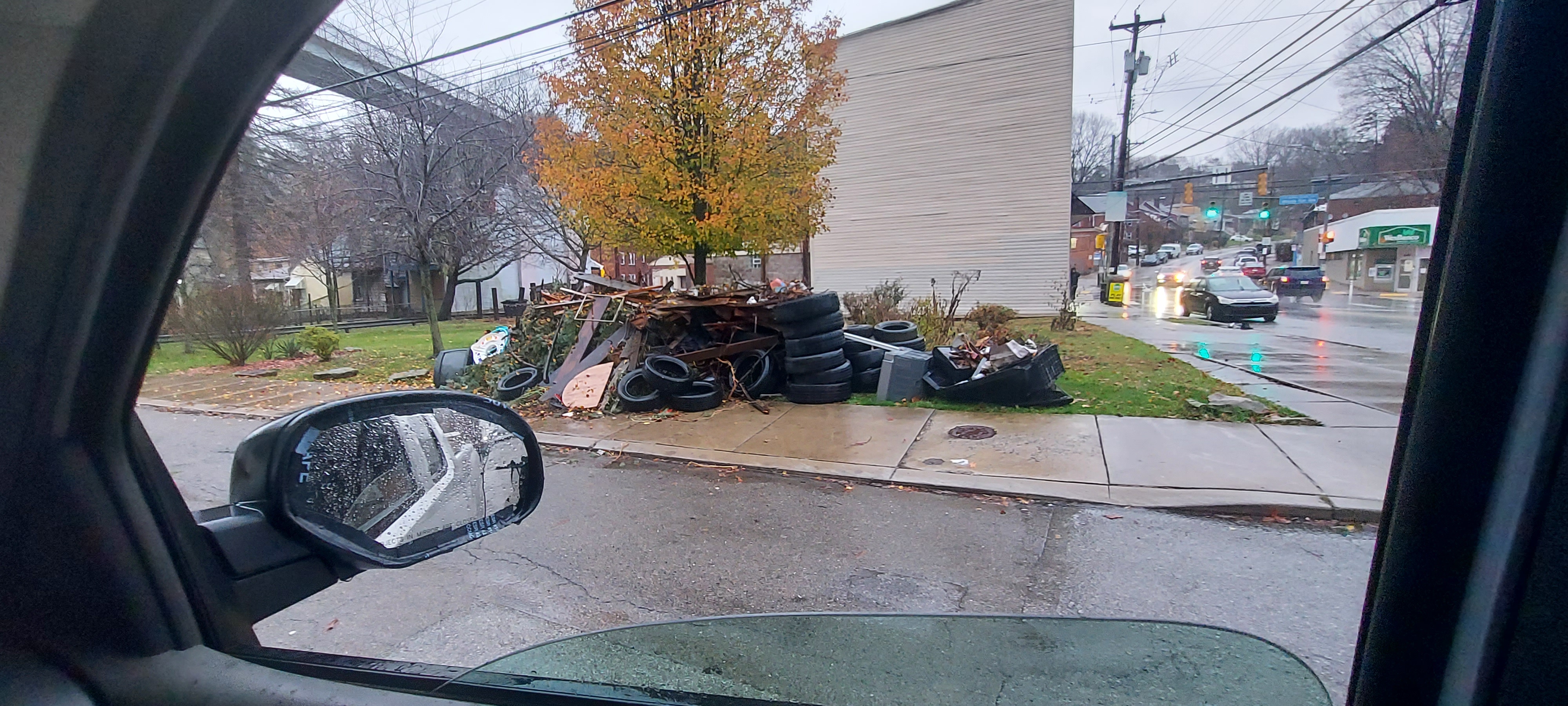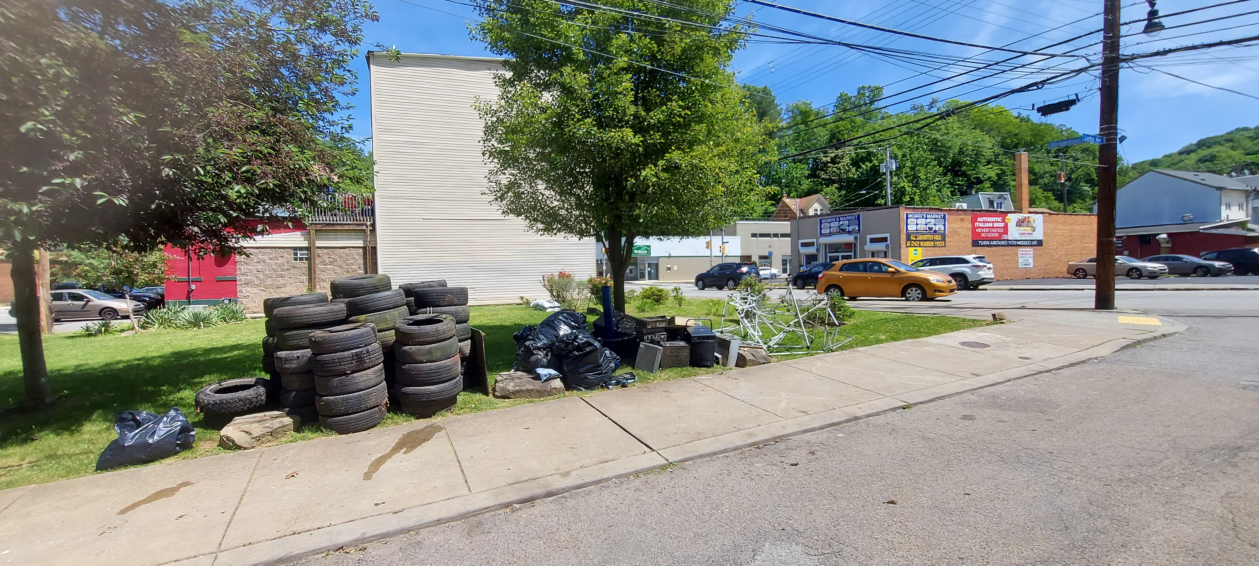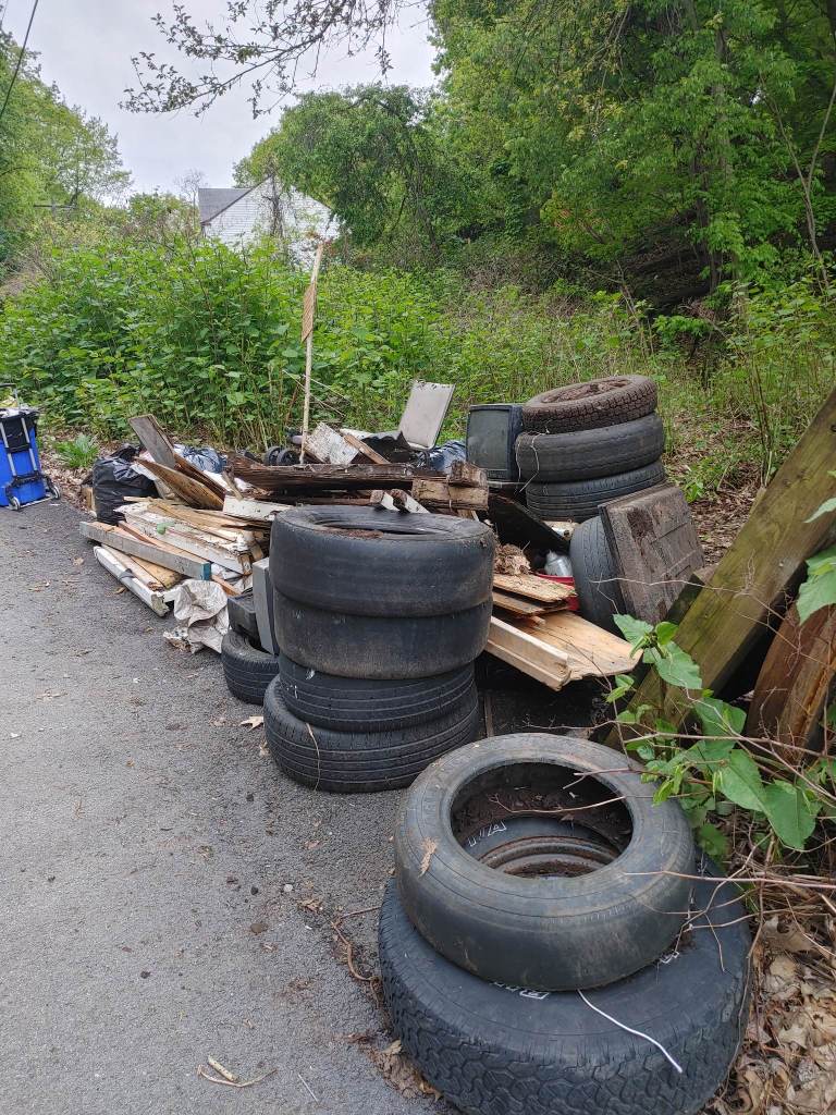 The most interesting thing about this cleaned up is while waiting for public works to pick up our pile magically grew in size in 3 days. At least a dozen more tires, mounds of trash bags, as well as yard debri and construction waste.