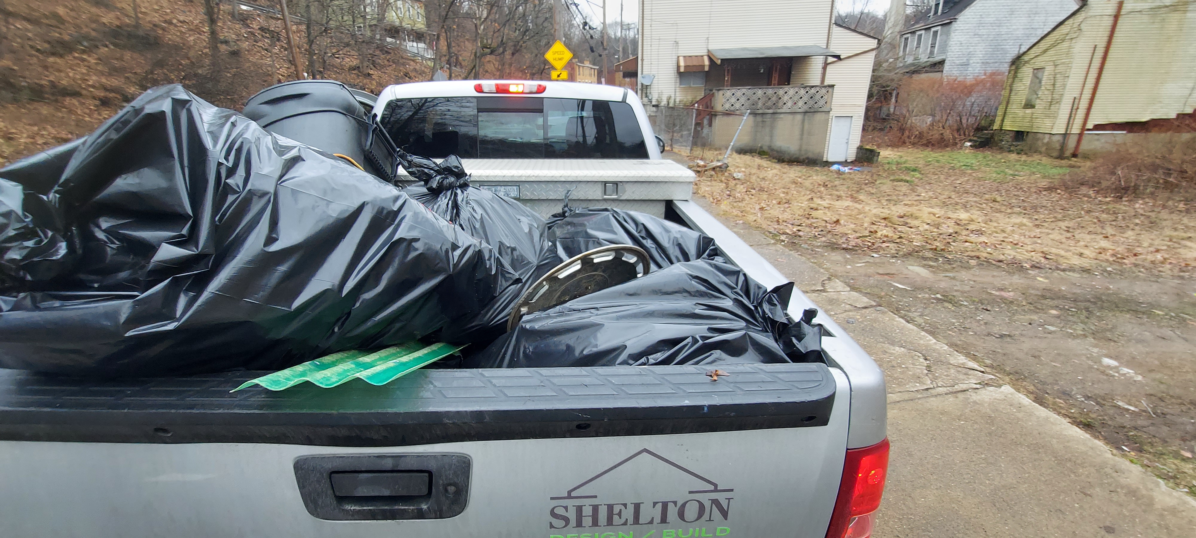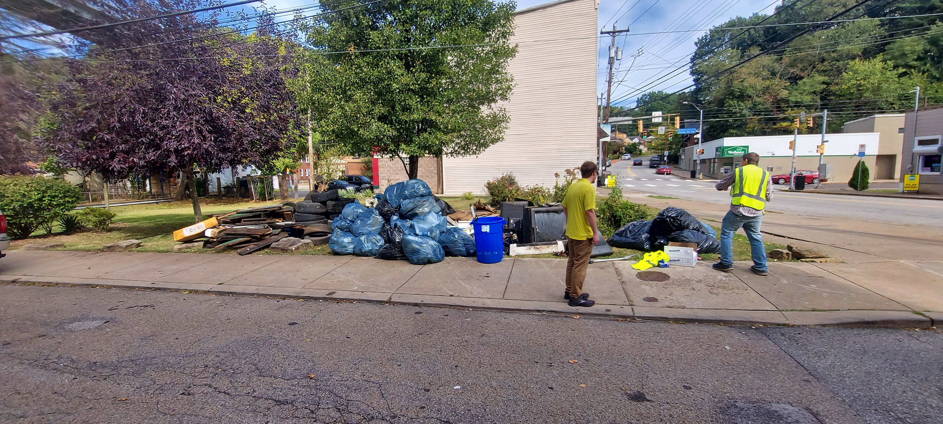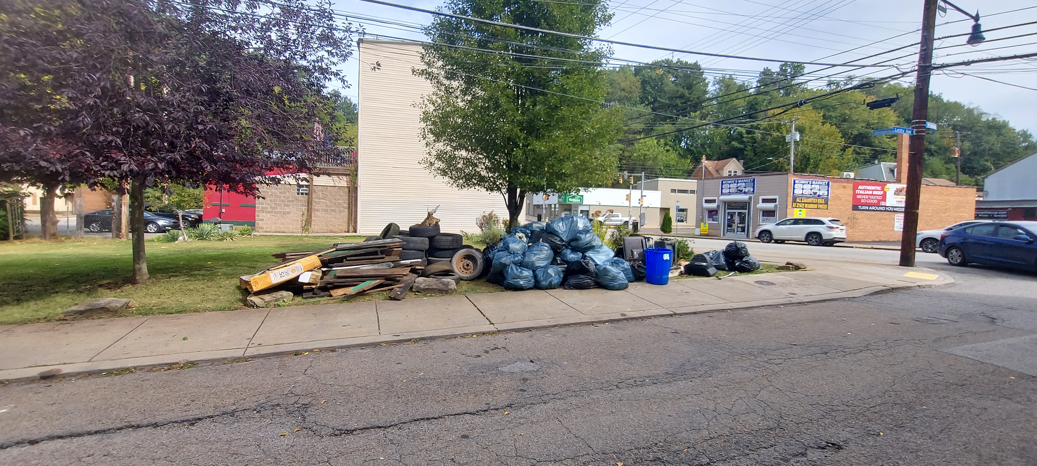 The most interesting thing about this cleaned up is while waiting for public works to pick up our pile magically grew in size in 3 days. At least a dozen more tires, mounds of trash bags, as well as yard debri and construction waste.