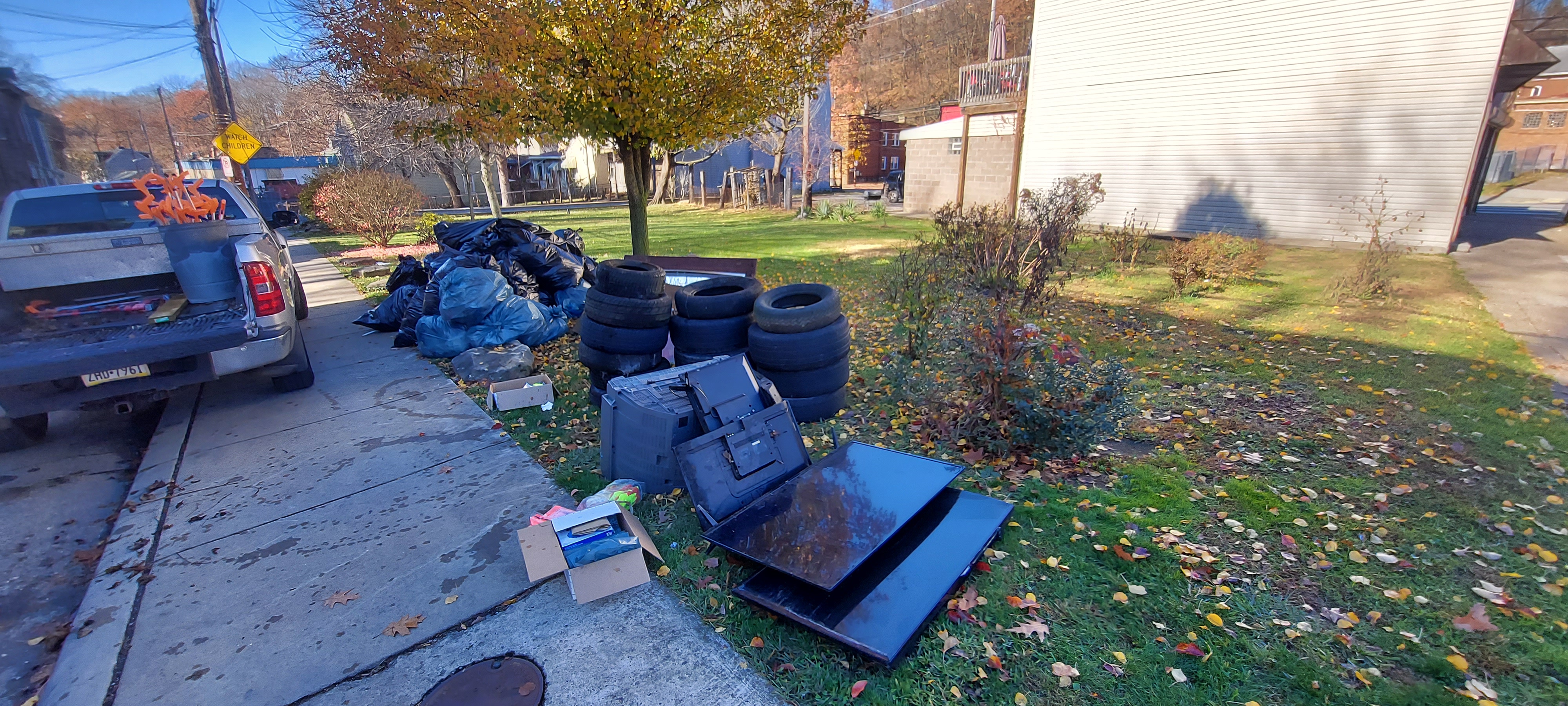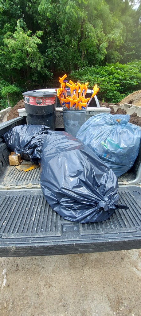30 bags of trash, 16 tires, tons of construction debri, and plenty of tv’s.